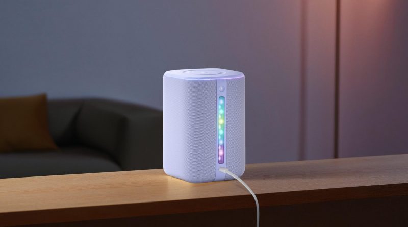 Эмбиент-лента из 12 диодов управляется кнопкой на крышке или Алисой. Есть готовые пресеты вроде «Лава-лампы» или «Светомузыки».