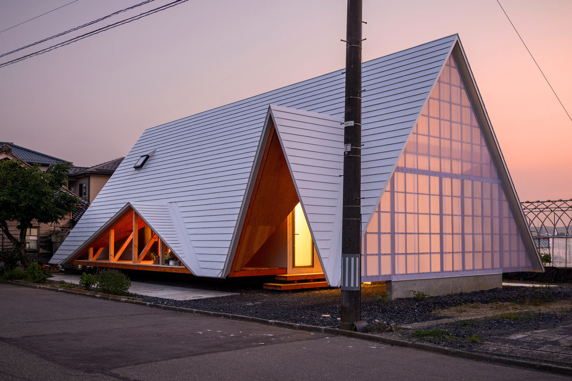 В небольшой японской деревне с традиционной застройкой построили дом, который больше похож на огромную палатку, чем на привычное жилье. Проект Hara House придумала студия Takeru Shoji Architects.