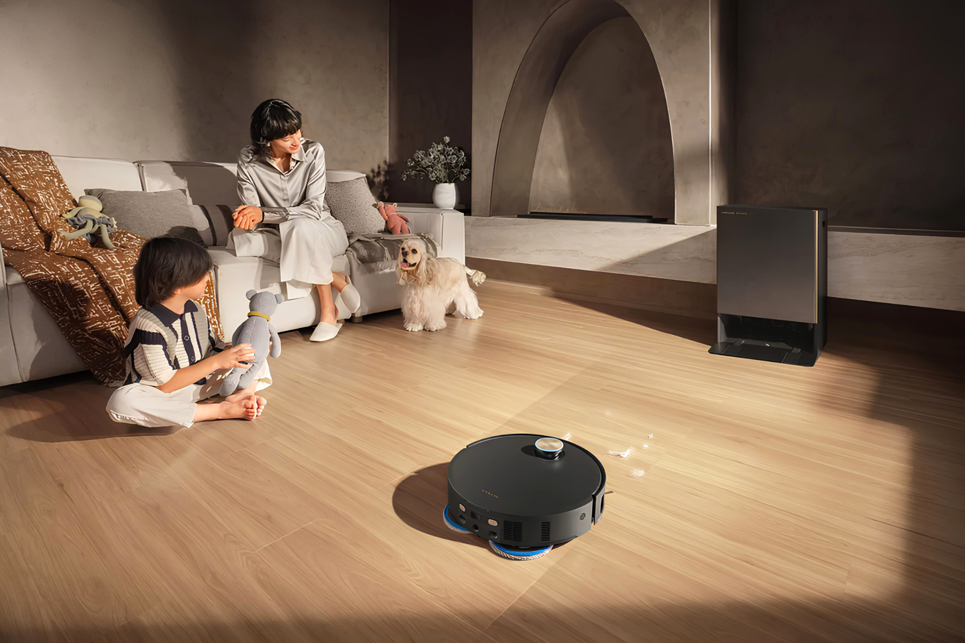 В док-станции также есть три емкости для разных моющих средств: для ежедневной уборки, для ухода за деревянным полом и для устранения запахов домашних животных.