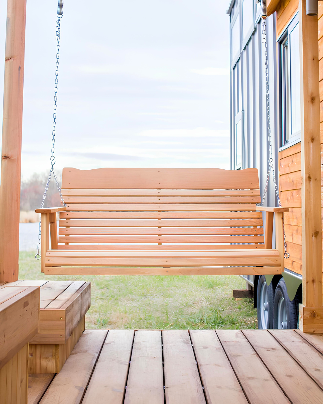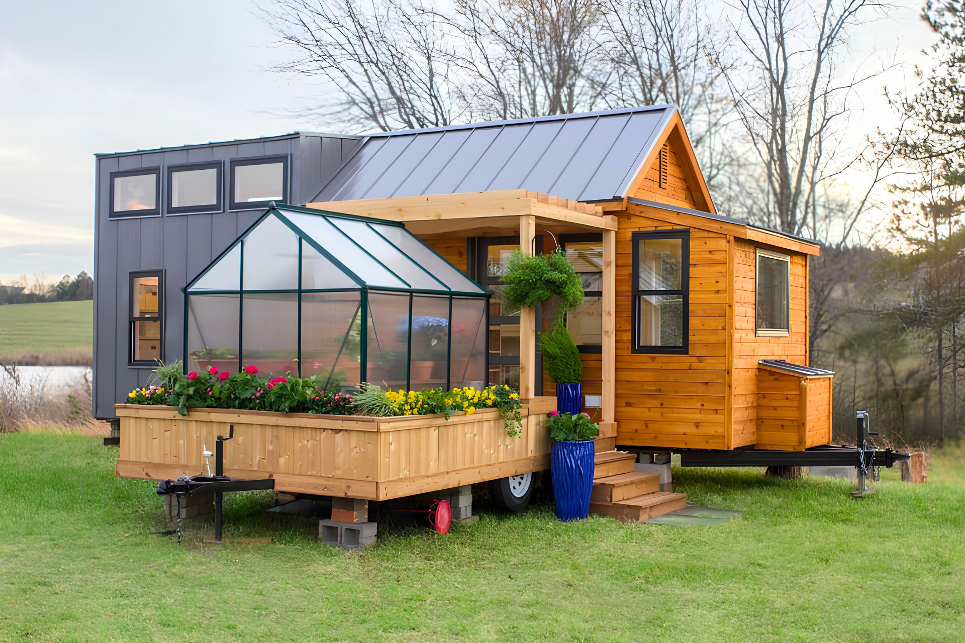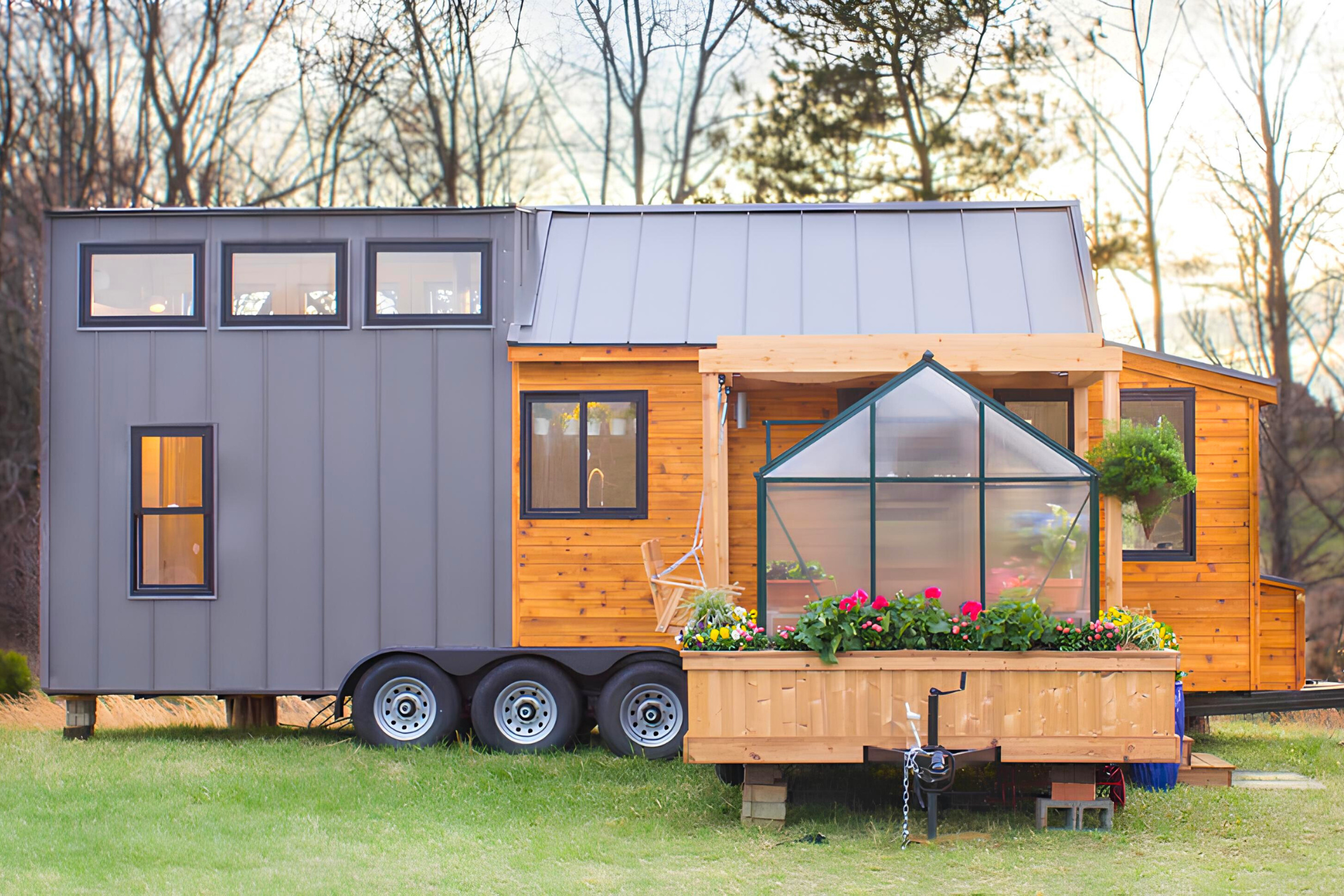 Elsa — мобильный дом площадью 30 м², дополненный отдельным модулем еще на 8 м² с теплицей, небольшим садом, перголой и качелями.