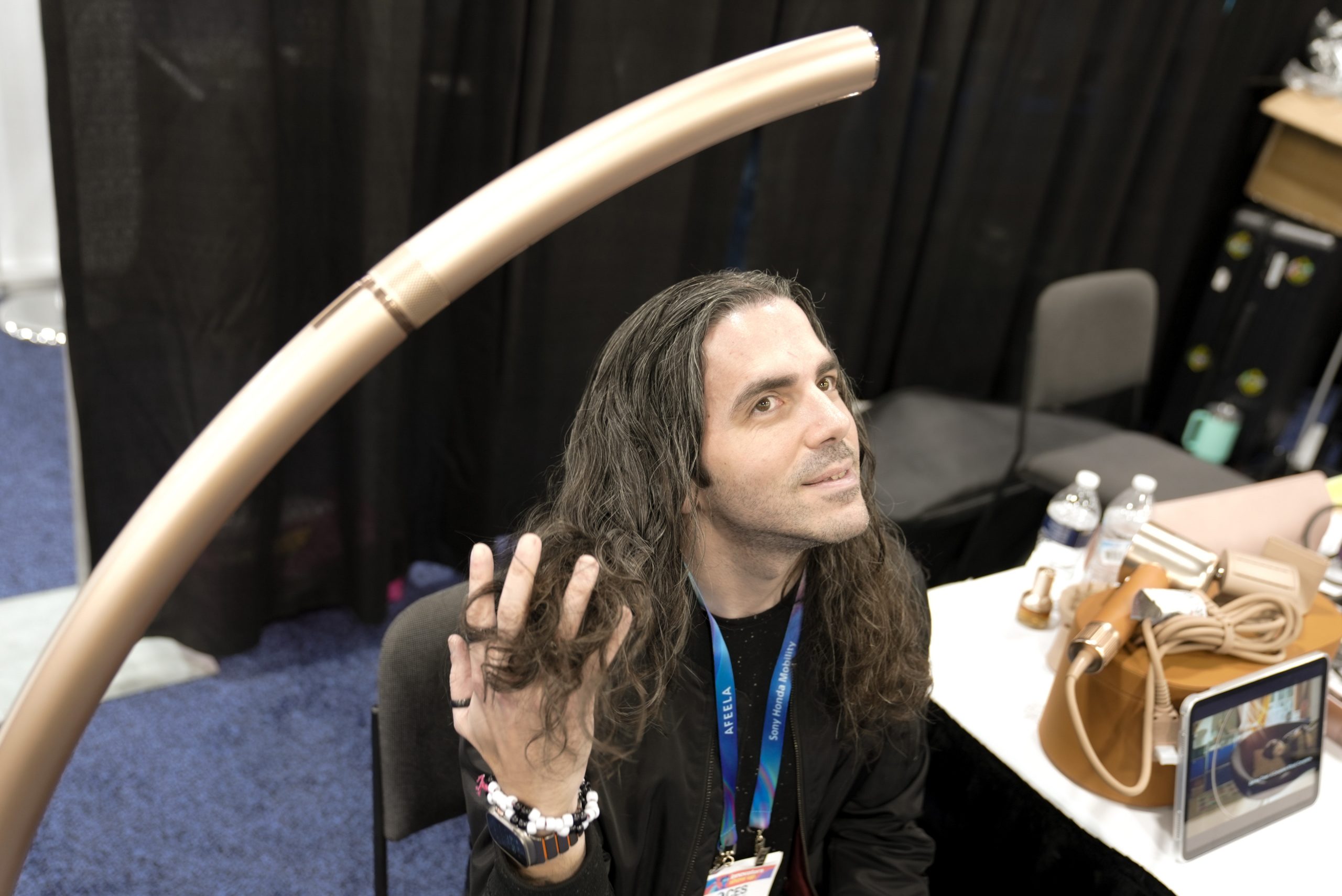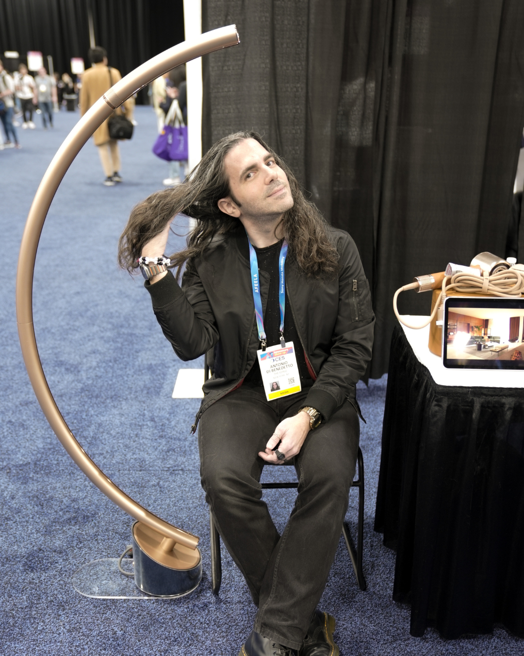 Dreame придумала необычный фен — он встроен в напольный торшер и сушит волосы, пока вы сидите на диване со свободными руками.