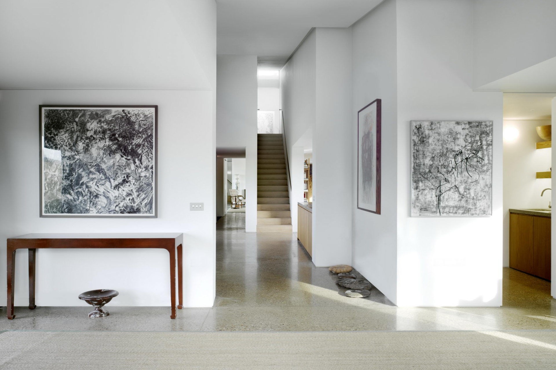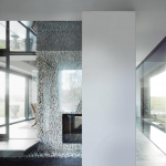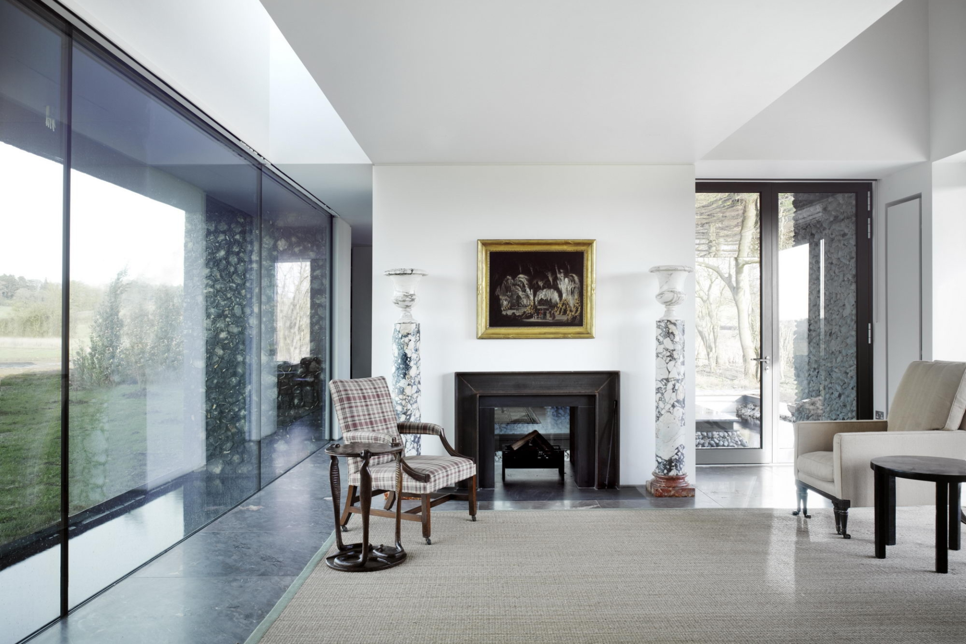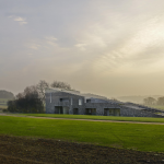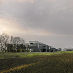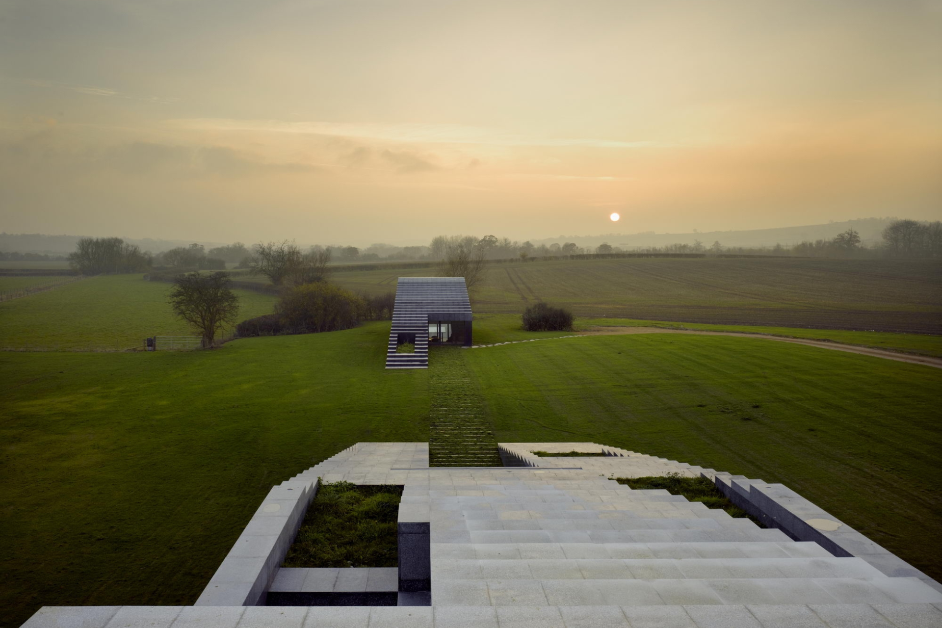 Архитекторы постарались сделать так, чтобы дом выглядел естественной частью пейзажа. Район известен меловыми холмами, где часто встречается кремень, поэтому именно этот материал стал основой проекта.