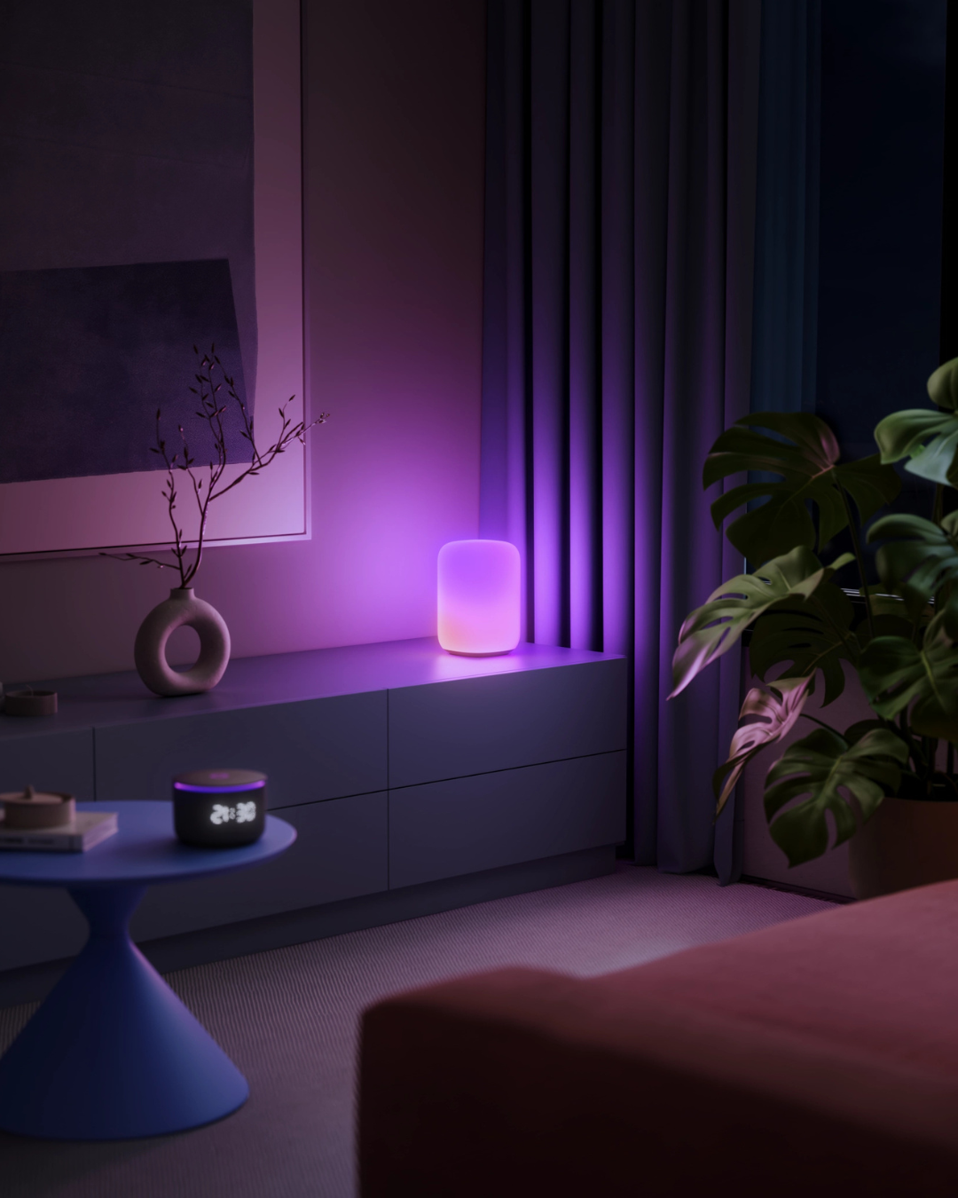 Эмби-лампа за 5000 ₽ создает мягкий рассеянный свет и может работать как ночник. У нее есть множество световых режимов и синхронизация света с музыкой на «Станции».
