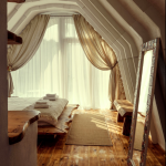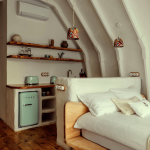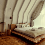 Экодомики стоят прямо у воды, рядом с первым в стране вейк-парком. Вместо привычных материалов архитекторы использовали глину, солому и известковую штукатурку. Такая конструкция создает естественный микроклимат: стены дышат, удерживают тепло и регулируют влажность. Мебель и светильники сделали местные мастера.
