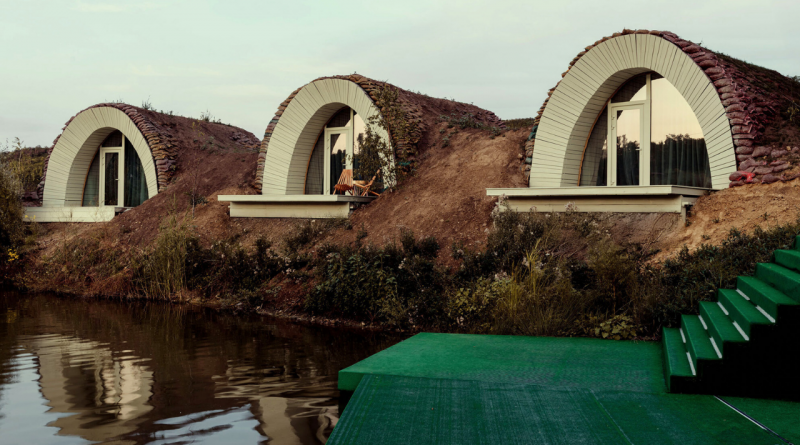 Снаружи Hobbit Wake Houses почти сливаются с ландшафтом: панорамные окна выходят на озеро, а крыши постепенно зарастают травой. Идеальное место, если хочется тишины и передышки от города.
