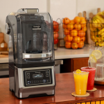 Главная фишка — автоматическая крышка и звукоизолирующий кожух. Достаточно одного нажатия, чтобы блендер закрылся и начал работать практически бесшумно — без привычного «ревущего» фона.