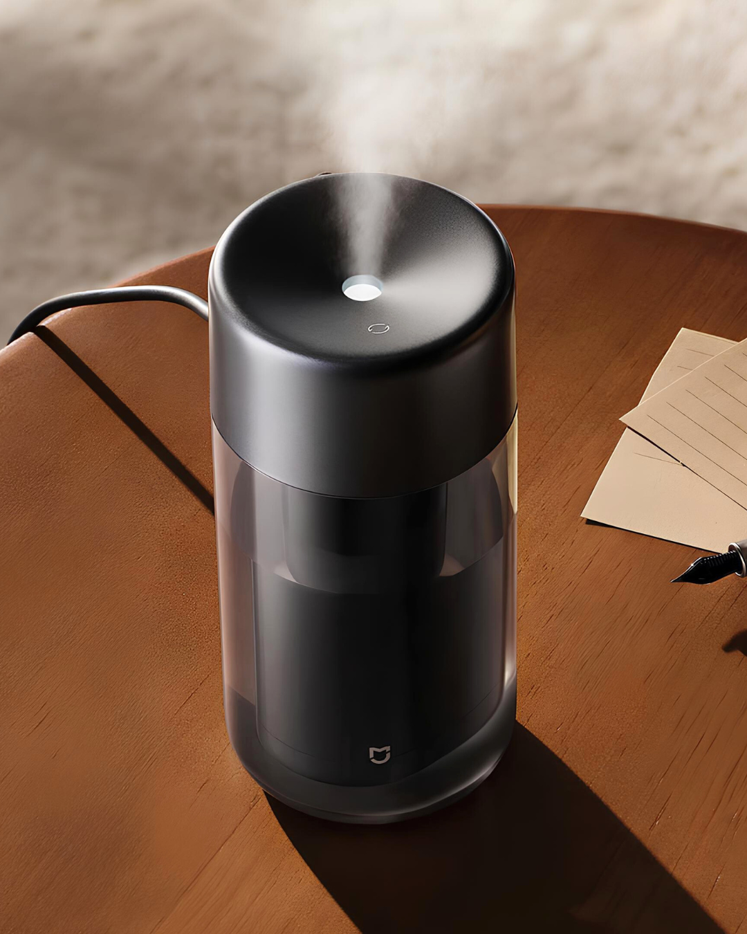 Его можно ставить в подстаканник и использовать как в машине, так и в небольших комнатах. Резервуар на 210 мл сделан из антибактериального материала с ионами серебра. Есть два режима работы, на максимуме расход составляет 230 мл/ч. Питается девайс от USB-C (5 В, 4.5 Вт).