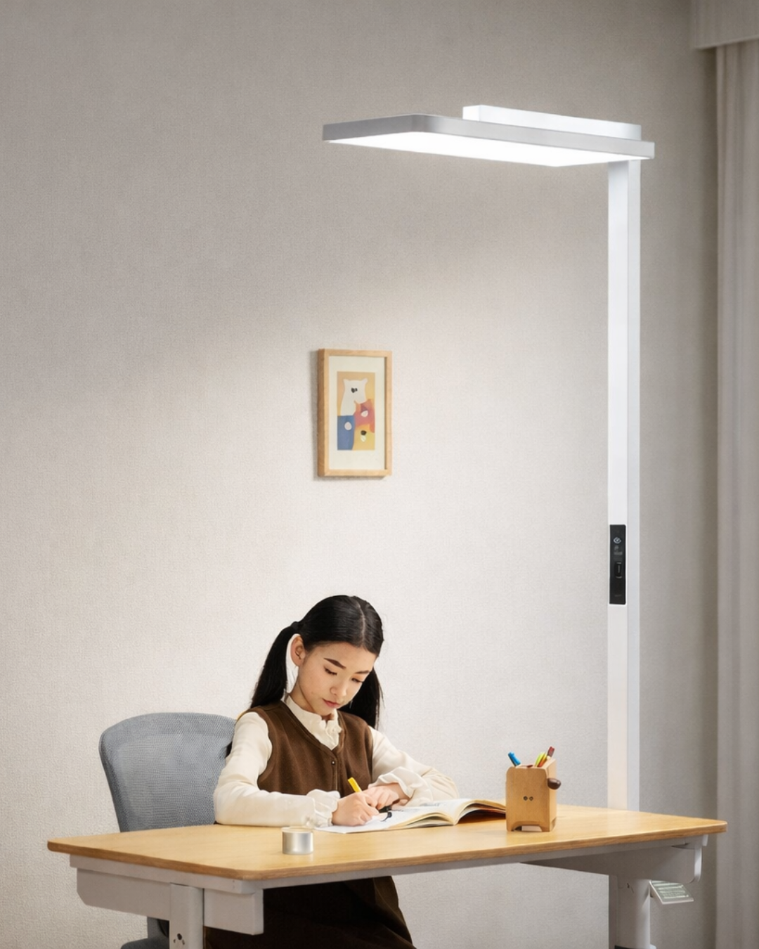 Конструкция сделана так, чтобы во время письма руки почти не отбрасывали тень на стол. Свет получается мягким и комфортным для глаз, при этом цвета выглядят естественно.