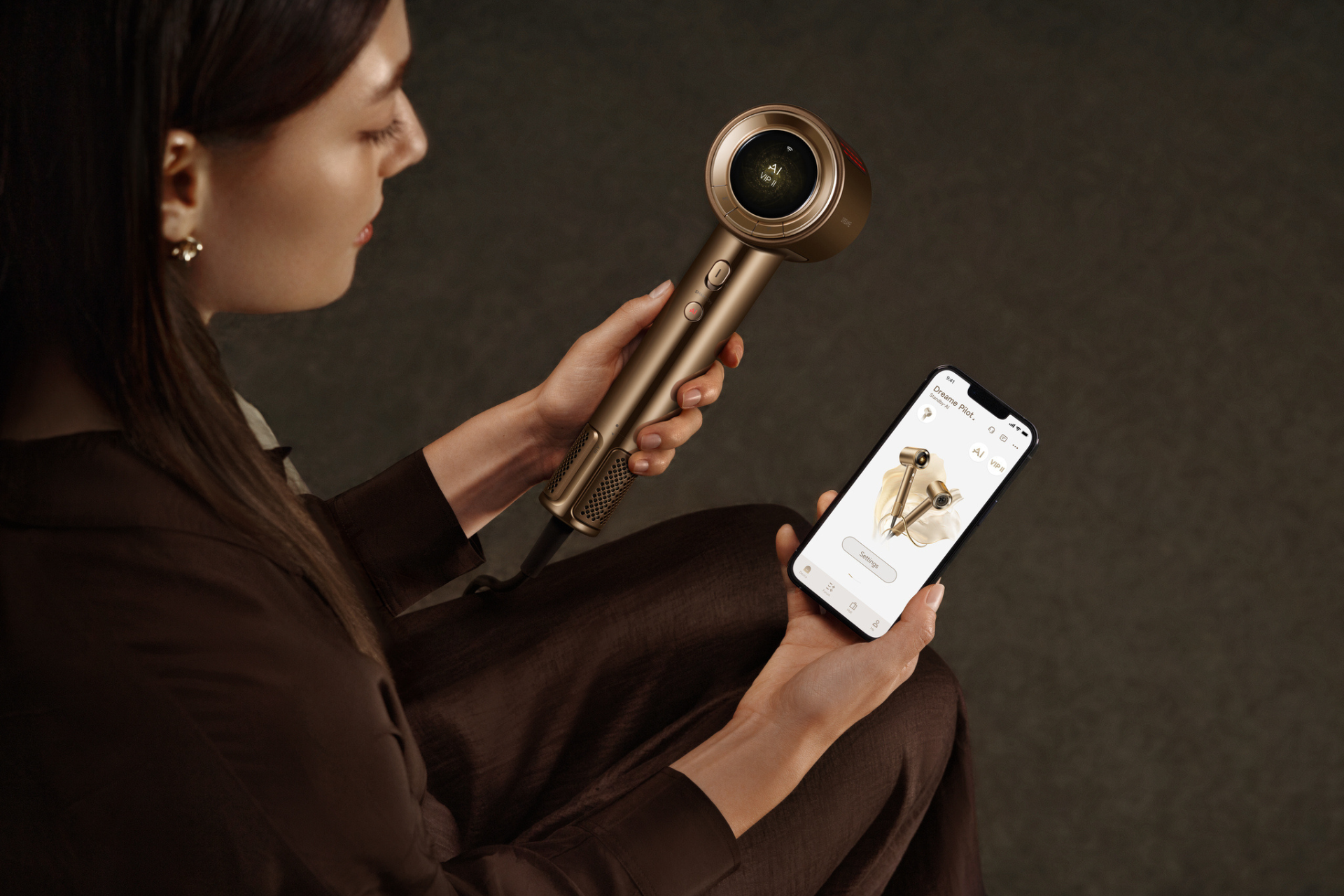 Фен Dreame Pilot стал одной из самых технологичных новинок компании. Он оснащен мотором на 150 000 об/мин, обеспечивающим скорость воздушного потока до 70 м/с. Технология AI Smart Temperature Protection контролирует температуру в реальном времени: термистор NTC измеряет ее 500 раз в секунду, предотвращая перегрев и сохраняя здоровье волос. Фен поддерживает персонализацию через приложение Dreame — можно создать до трех профилей с индивидуальными настройками температуры и скорости. Девайс автоматически распознает насадки и запоминает последние параметры. В комплекте — четыре насадки: диффузор, стайлинговая, разглаживающая и антифриз. Среди других функций: автоматическая пауза при установке на поверхность, LED-индикация режимов и дисплей для контроля параметров.