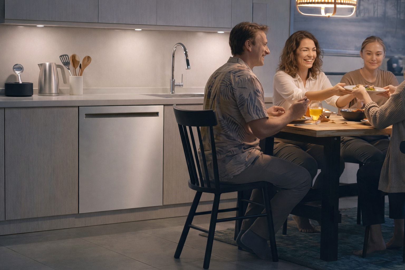 За сушку отвечает технология Dynamic Heat Dry+ — внутри используется материал, который выделяет тепло при поглощении влаги. Это ускоряет высыхание посуды и снижает расход энергии. Плюс есть технология TrueSteam, уменьшающая количество разводов после мытья.