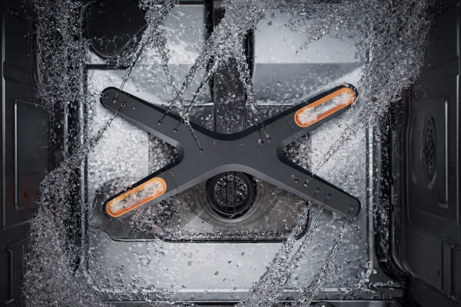 Полный цикл мытья и сушки занимает час. Система мойки в четырех направлениях QuadWash Pro генерирует микропузырьки, которые помогают моющему средству лучше справляться с загрязнениями.