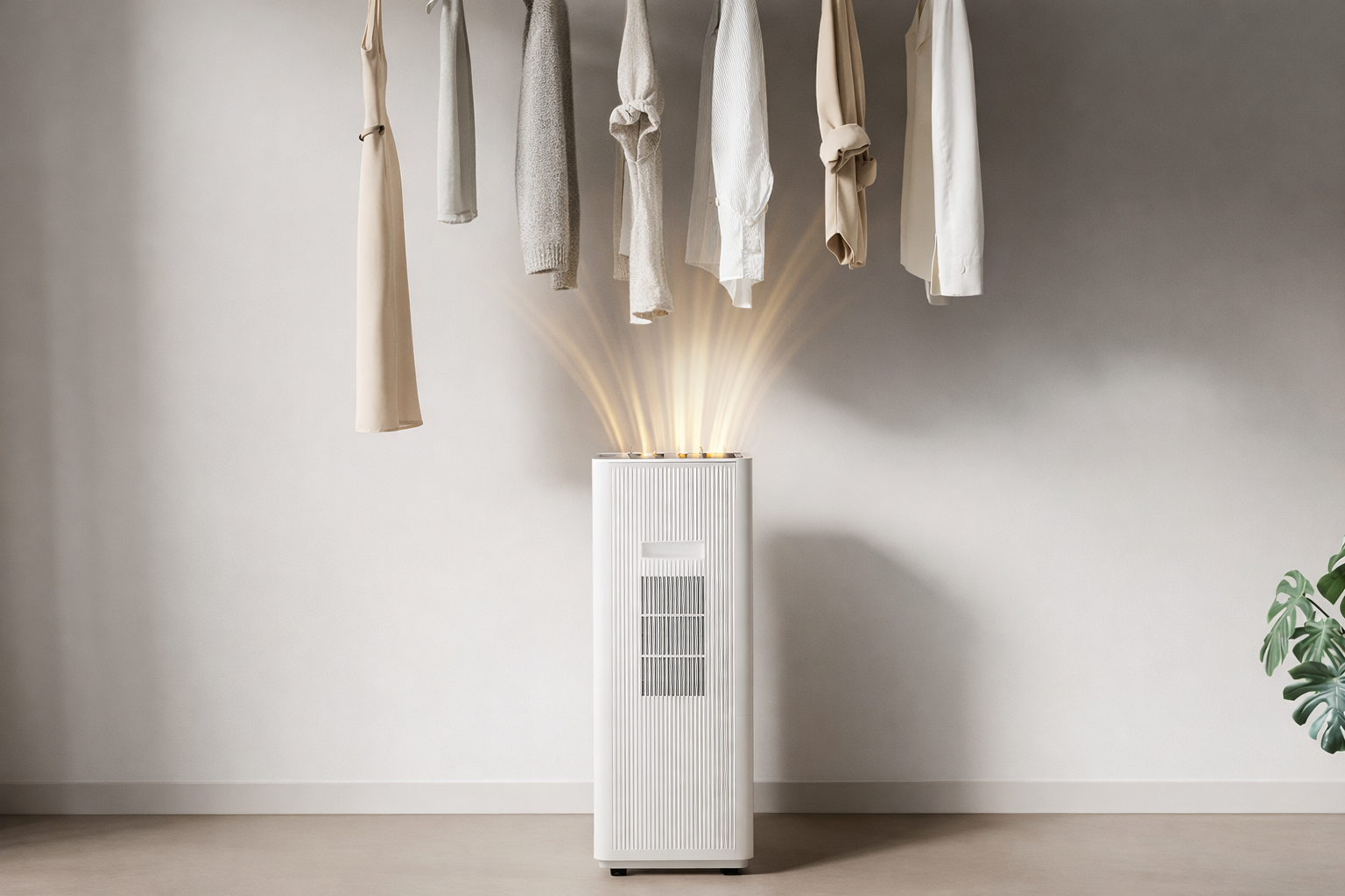 За сутки он может удалить до 60 литров влаги из воздуха — в комнате около 15 м² влажность снижается за несколько минут. Плюс есть режим для сушки одежды — говорят, что до десяти хлопковых вещей высыхают примерно за час. Вода собирается в девятилитровй бак, есть и дренажный насос для отвода.