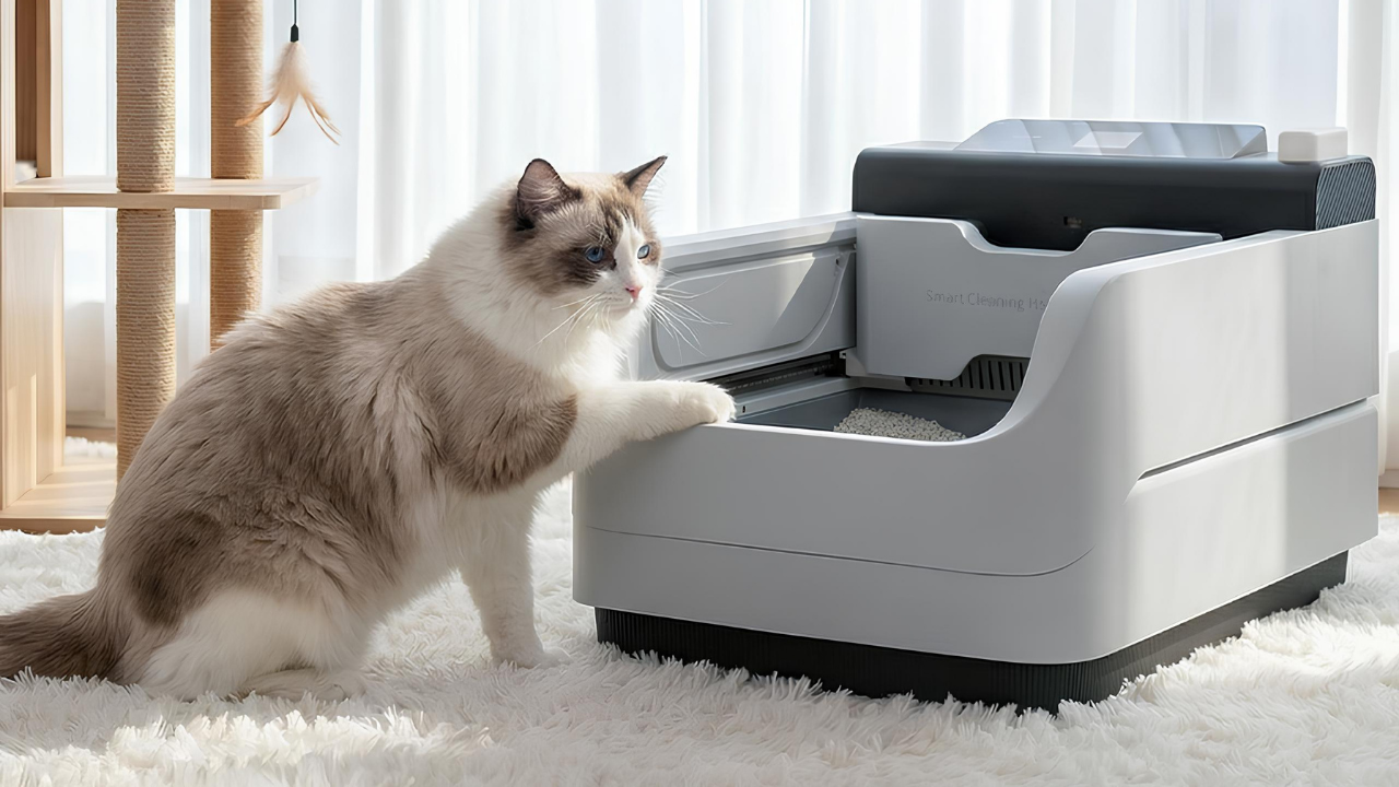 Он подключается к водопроводу и использует многоразовые гранулы вместо обычного наполнителя. После использования система сама промывает их, дезинфицирует и сушит горячим воздухом. Твердые отходы измельчаются и смываются в канализацию, поэтому чистить лоток вручную не нужно. Один цикл занимает около 45 минут, но датчики останавливают процесс, если хвостатые подходят слишком близко.