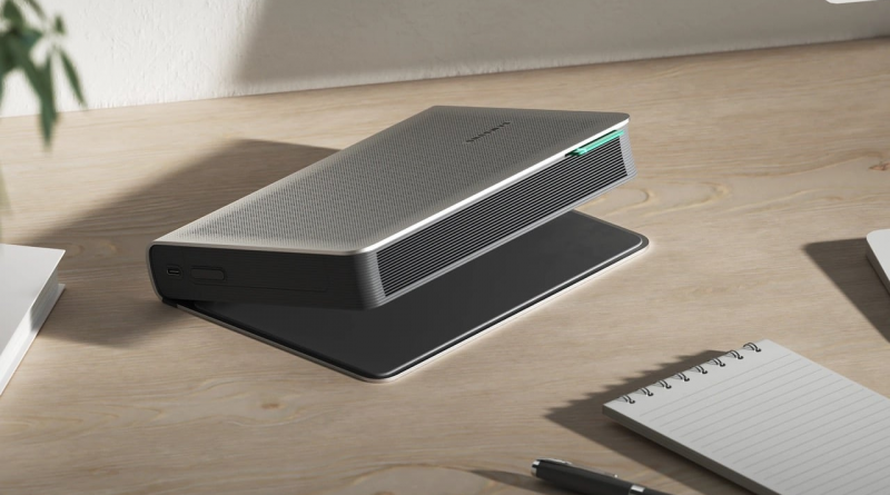 Работает девайс от аккумулятора, заряжается через USB-C. Спереди есть световой индикатор в форме закладки — он показывает, включено ли устройство и сколько осталось заряда.