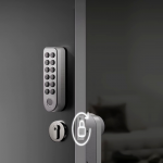 Self-Install Smart Lock совместим с большинством типов замков. В комплект входят основной блок и клавиатура с дактилоскопическим сканером, плюс можно докупить дверной датчик для функции автоматической блокировки.
