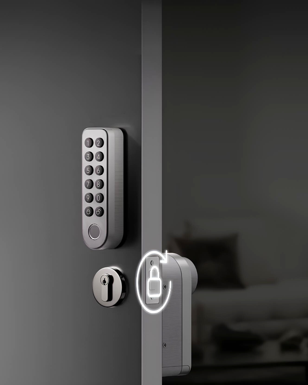 Поддерживается разблокировка по отпечатку пальца, паролю, Bluetooth или голосом через Siri и Google Ассистента. Есть защита от влаги по стандарту IP65 и интеграция с экосистемой умного дома. Устанавливается замок за 5-10 минут с помощью обычной отвертки.