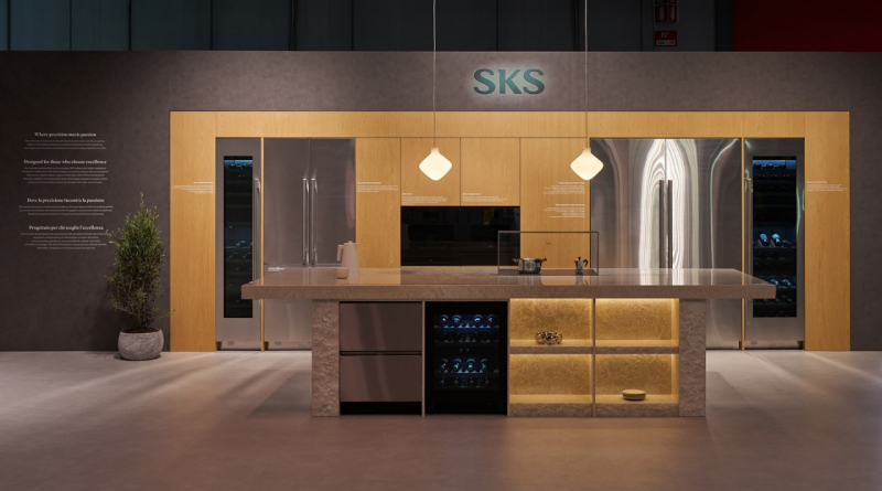 Бренд SKS впервые участвует в европейской выставке после ребрендинга. На стенде показаны несколько зон: основная кухня, более «профессиональный» формат с техникой увеличенной вместимости и отдельная часть с новыми продуктами. Среди них — мультифункциональный компактный духовой шкаф с ящиком для подогрева «6 в 1», который оснащен режимами конвекции, пара, аэрогриля и микроволновки, а также инверторной технологией запекания Inverter ProBake™ для равномерного распределения тепла.