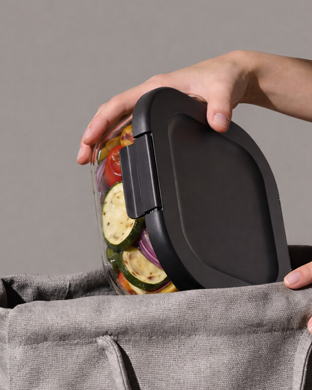 Вместо стандартной чаши здесь стеклянные контейнеры — после готовки блюдо не нужно перекладывать в другую посуду. Это удобно, если планируете взять еду на работу, в поездку или хранить ее в холодильнике.