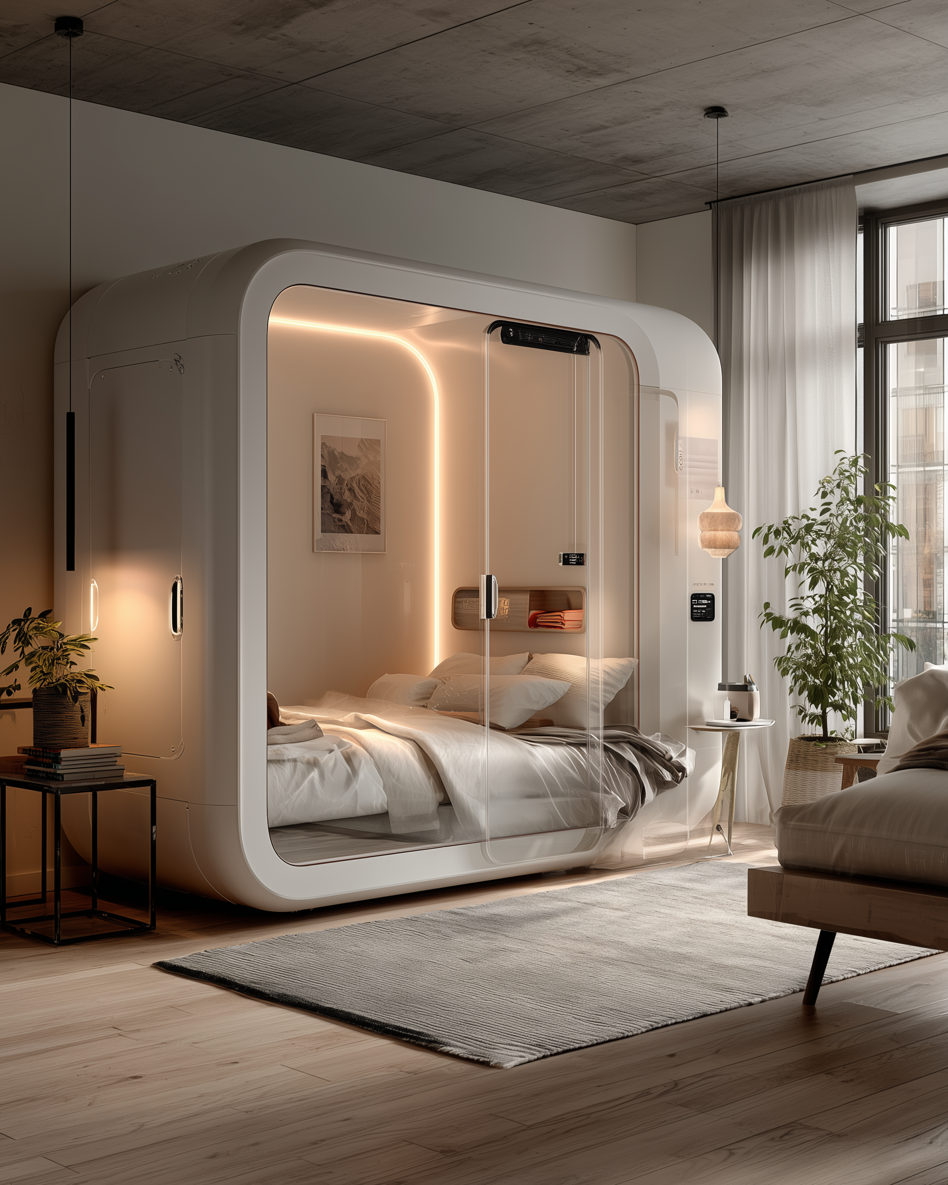 DreamPod — это умная капсула, которая создает идеальные условия для сна и восстановления. Она управляет светом, звуком, температурой и даже качеством воздуха внутри, подстраиваясь под биоритмы человека.