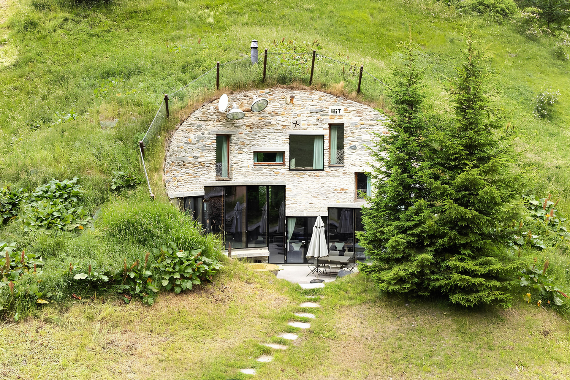 В швейцарской деревне Вальс реализовали проект дома, почти полностью скрытого внутри холма.