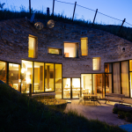 Жилая часть площадью 160 м² находится под землей, а наружу выходят только стеклянный фасад с террасой на 60 м², которая используется как зона отдыха: здесь есть природный источник, дровяная горячая ванна и гриль.