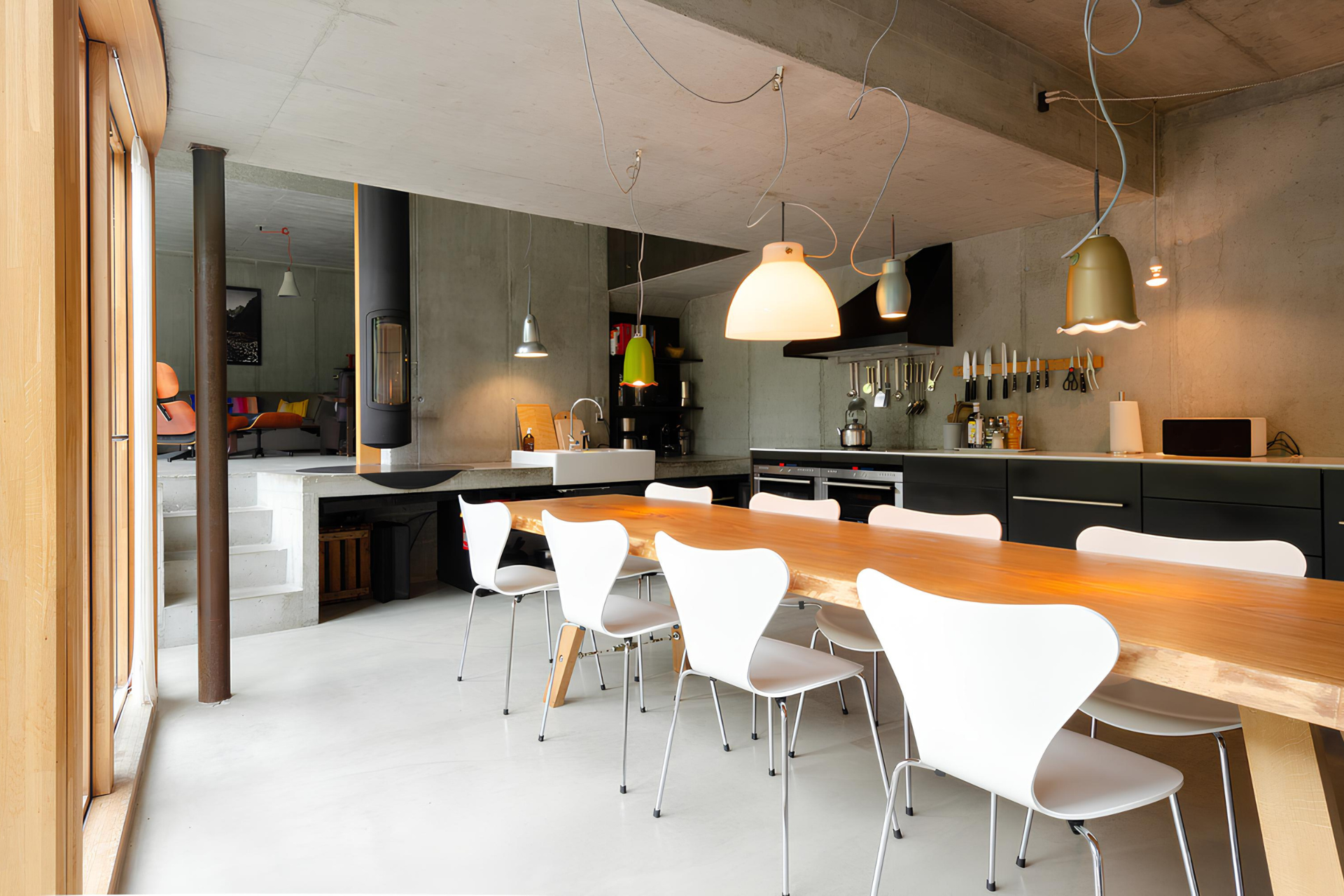 Попасть в дом можно через основной вход или по подземному тоннелю, соединяющему жилье с обычным на вид сараем. Это решение появилось не случайно. Деревня имеет статус исторической, и любые изменения в застройке строго ограничены — все наземные постройки, включая сарай, должны были сохранить внешний облик.